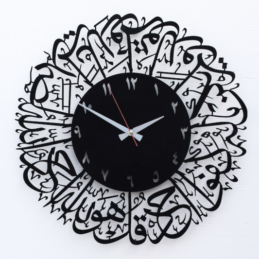 Surah Ikhlas Acrylic Wall Clock – Black Finish