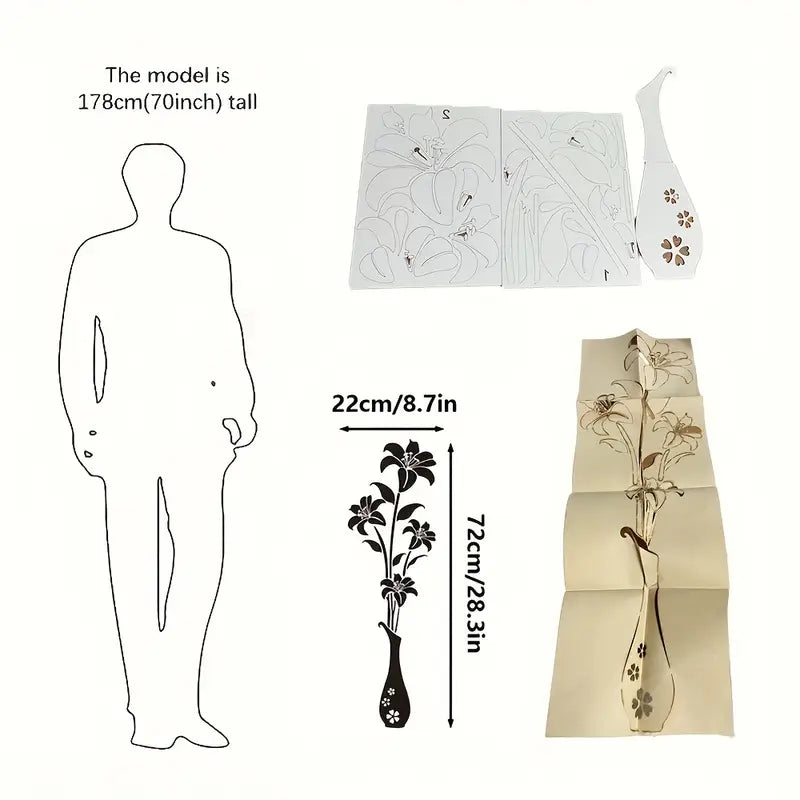 Acrylic Mirror Wall Sticker with Vintage Lily Flower & Glitter Design