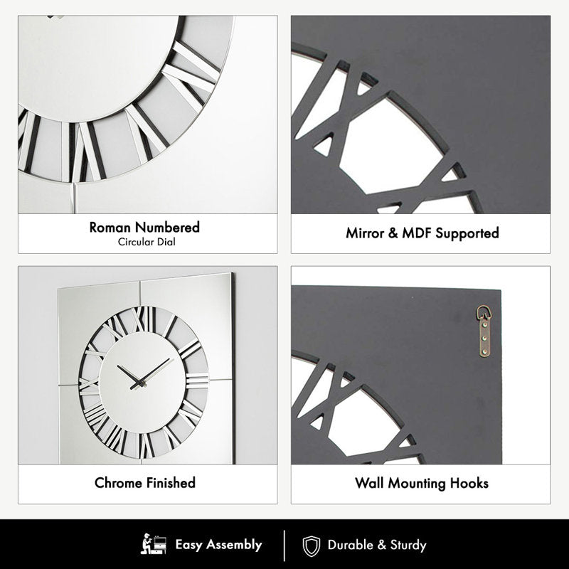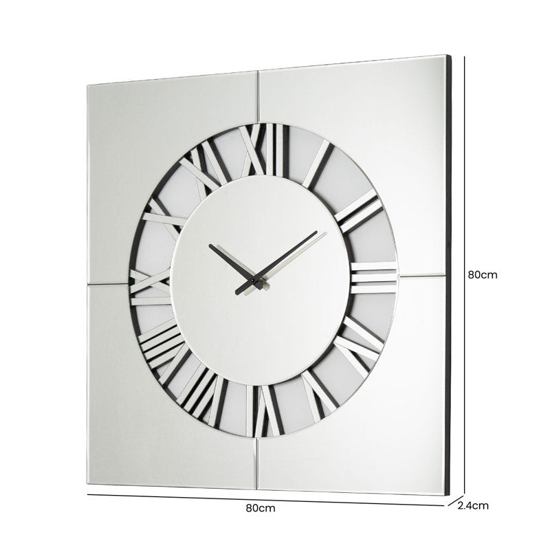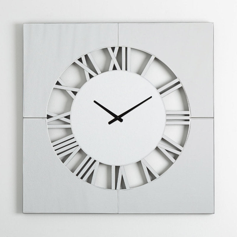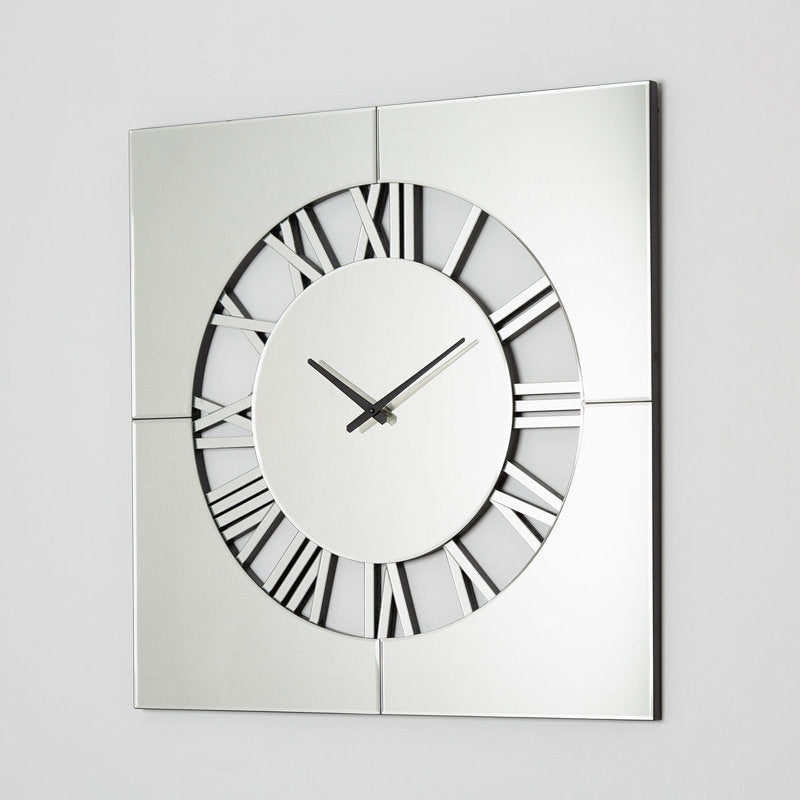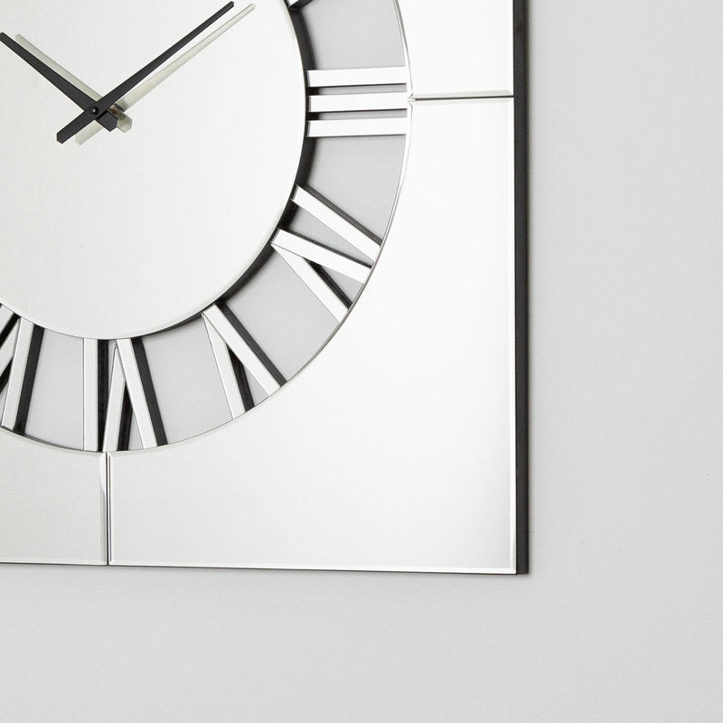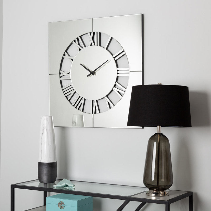 This mirrored wall clock is a stunning blend of beauty and functionality. Its intricate cut-out design on the dial, paired with the simple square surround, creates a sophisticated piece of wall art that will enhance any room with its reflections of light. Whether used for telling time or simply as a decorative accent, this wall clock is sure to make a lasting impression in any interior