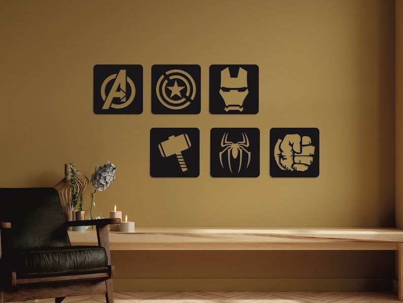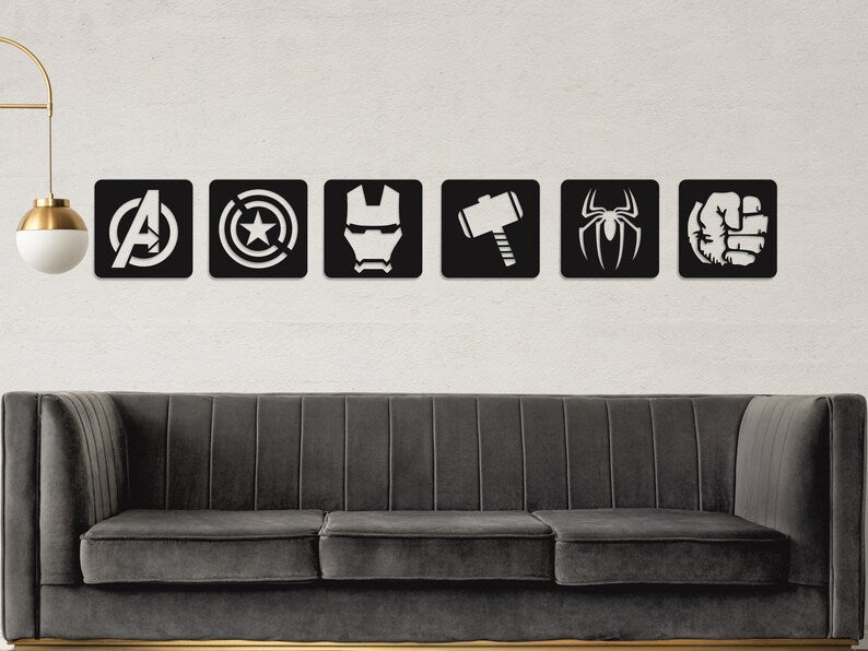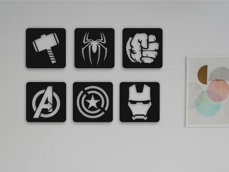 Avengers Wall Decor – Set of 6 Superhero Signs – Acrylic Kids Room Art