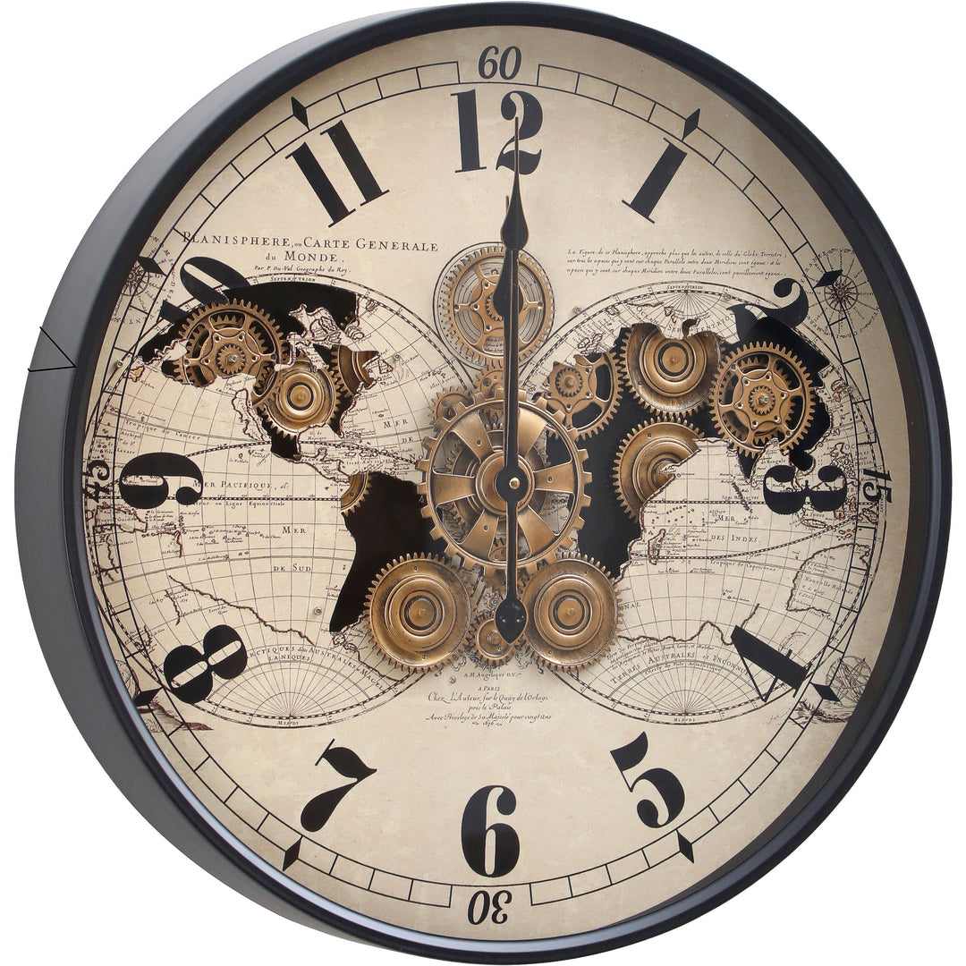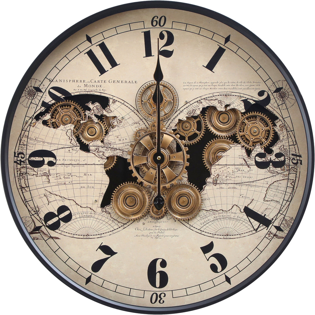 Vasco Map Industrial Metal Moving Gears Wall Clock