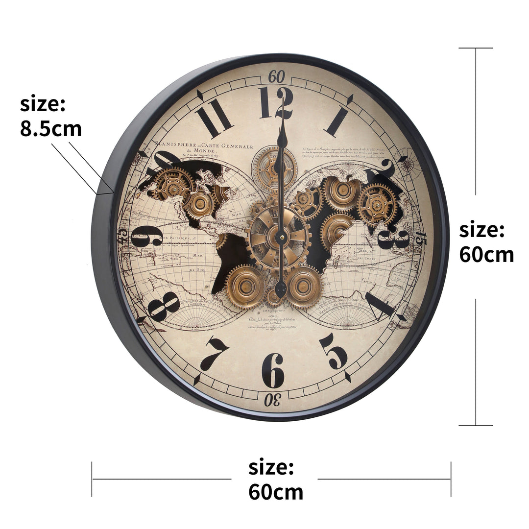 ·         Industrial-Inspired Design – Black & beige world map with moving gears.
