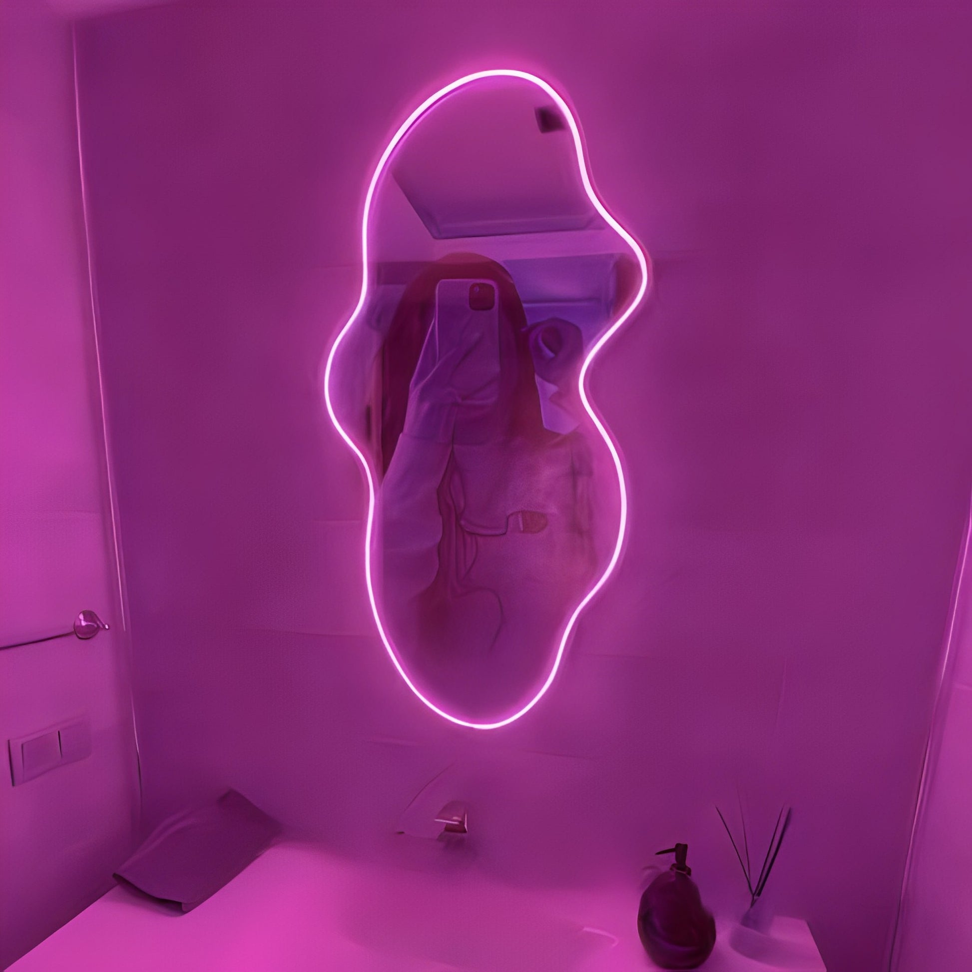 Add a splash of personality and light to your room with the Wavy Selfie Neon Mirror. Its curvy design and vibrant neon glow make it a perfect statement piece for selfies, makeup routines, or mood lighting. Ideal for bedrooms, vanity corners, or as a unique gift!